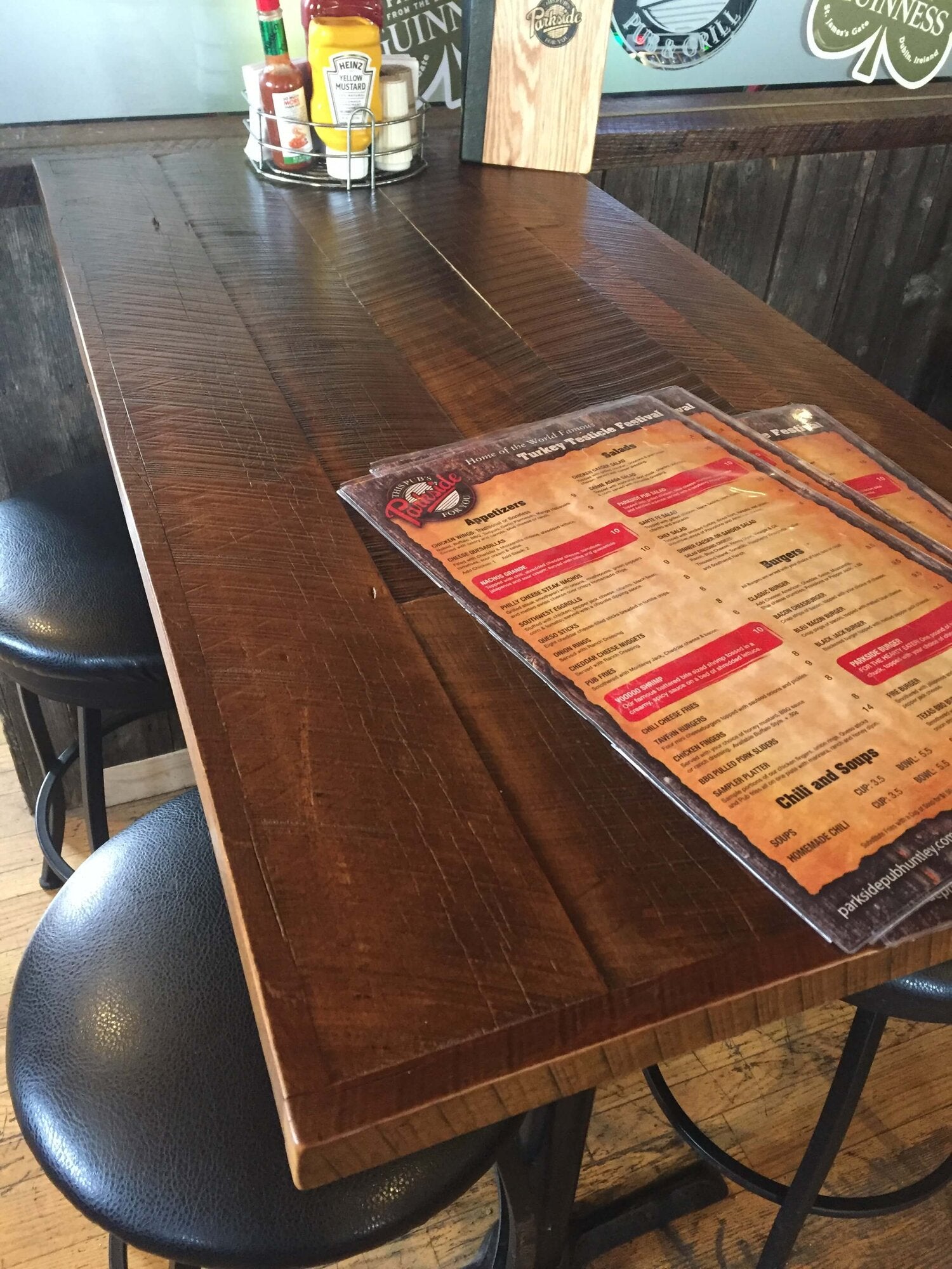 Located in downtown Huntley, IL. Our team worked directly with the owners to develop a unique long-lasting table design that provides a very rustic look. We created twelve custom tables as well as provided reclaimed lumber for several locations throughout the bar. Check out this amazing pub to see our work! Reach out today for more information!