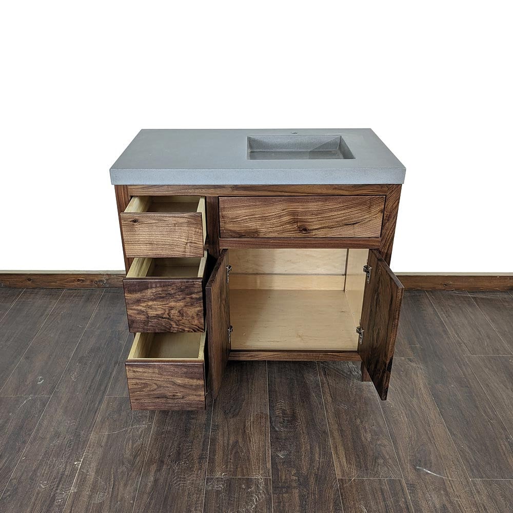 36" Rustic Walnut Bathroom Vanity - None / Left Side Sink is backordered and will ship as soon as it is back in stock.