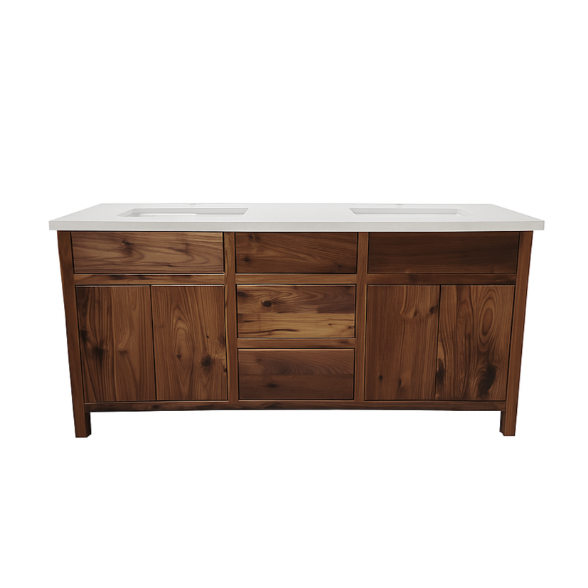 Upgrade your bathroom with our handcrafted 72β solid walnut vanity β a premium blend of rustic charm, modern function, and sustainable craftsmanship. Each vanity is built-to-order using character-rich hardwood sourced from Central Wisconsin, making it a truly unique centerpiece for your space.